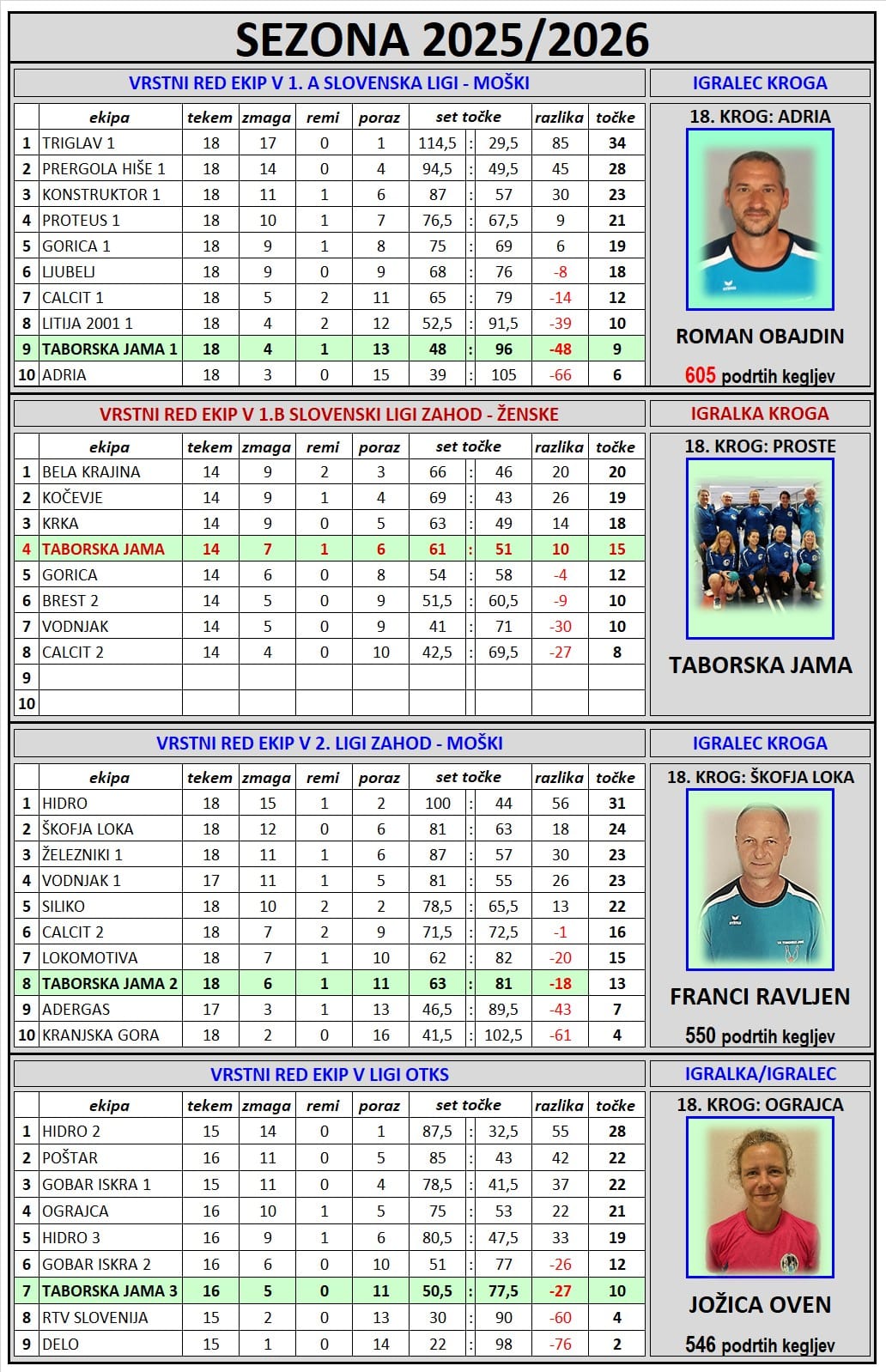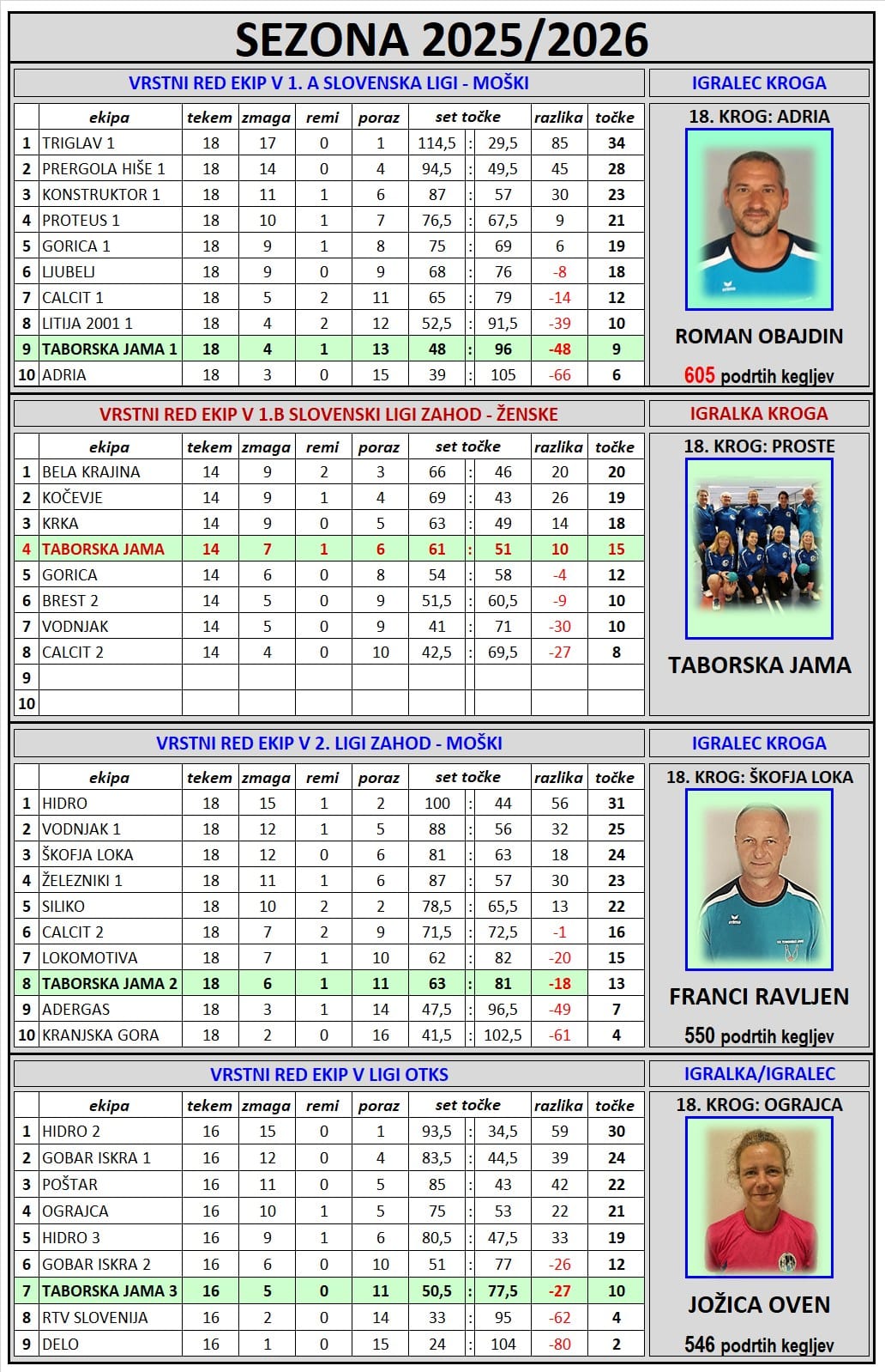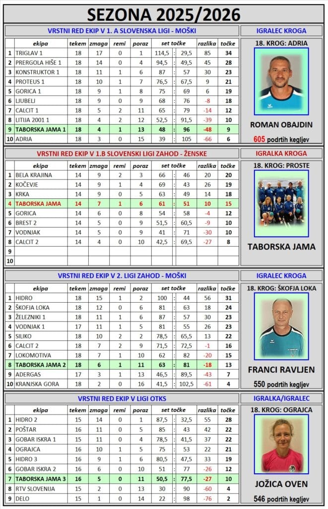 Razpored za sezono 2025/2026 –od 5.1 do 5.4.2026 – obnovljeno 7.1.2026