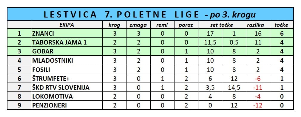 Raspis 7. Poletne lige Taborske jame; RAZPORED